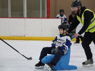 We have adaptive skating aids, such as sleds and seals, for individuals of any age with any type of disability.